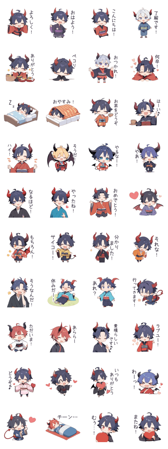 ニキャラの鬼の着物の男の子スタンプ