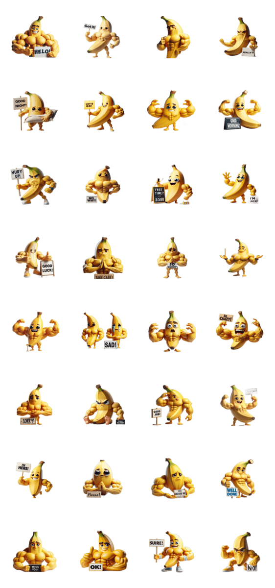 | スタンプ説明 | "私はビッグバナナ挨拶言葉、ユーモア、バナナ、面白い、挨拶、LINEスタンプ、コミュニケーション、 |