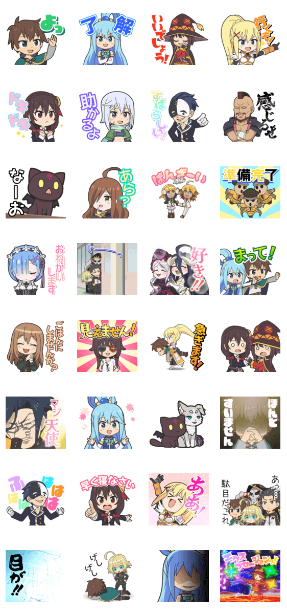 | スタンプ説明 | 異世界系ライトノベルのクロスオーバーアニメーション「異世界かるてっと」のLINEスタンプ第4弾! |