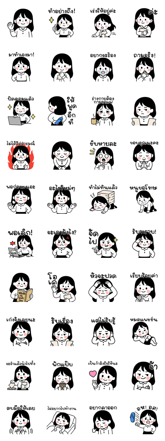 minimal girl work 1 -LINEスタンプマニア