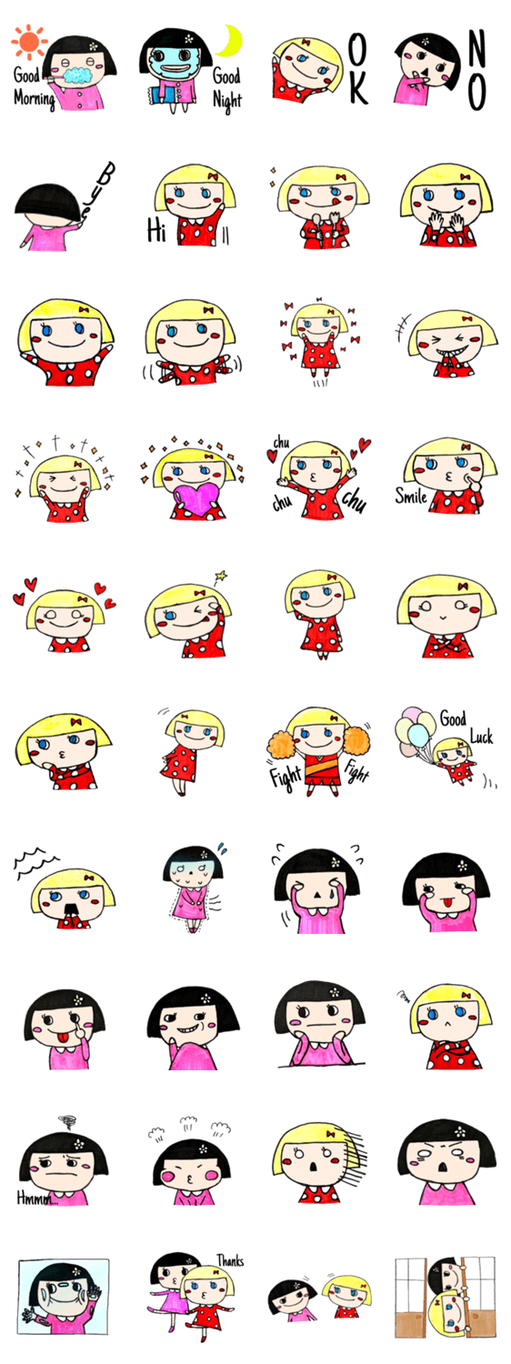 小さな女の子たちの使える日常スタンプです。