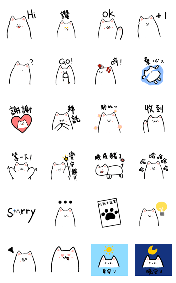 白ネコのあいうえお・・・ってるスタンプ