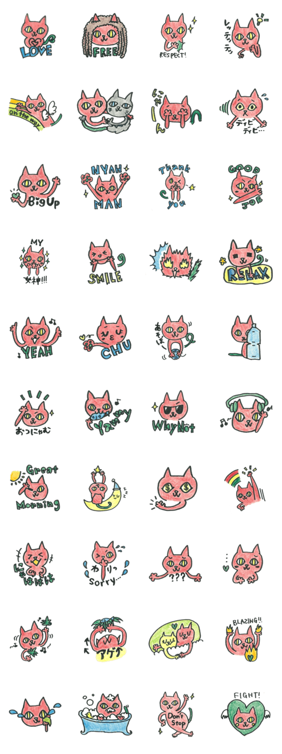 陽気なネコにゃんと、ポジティブに暮らせるスタンプです。