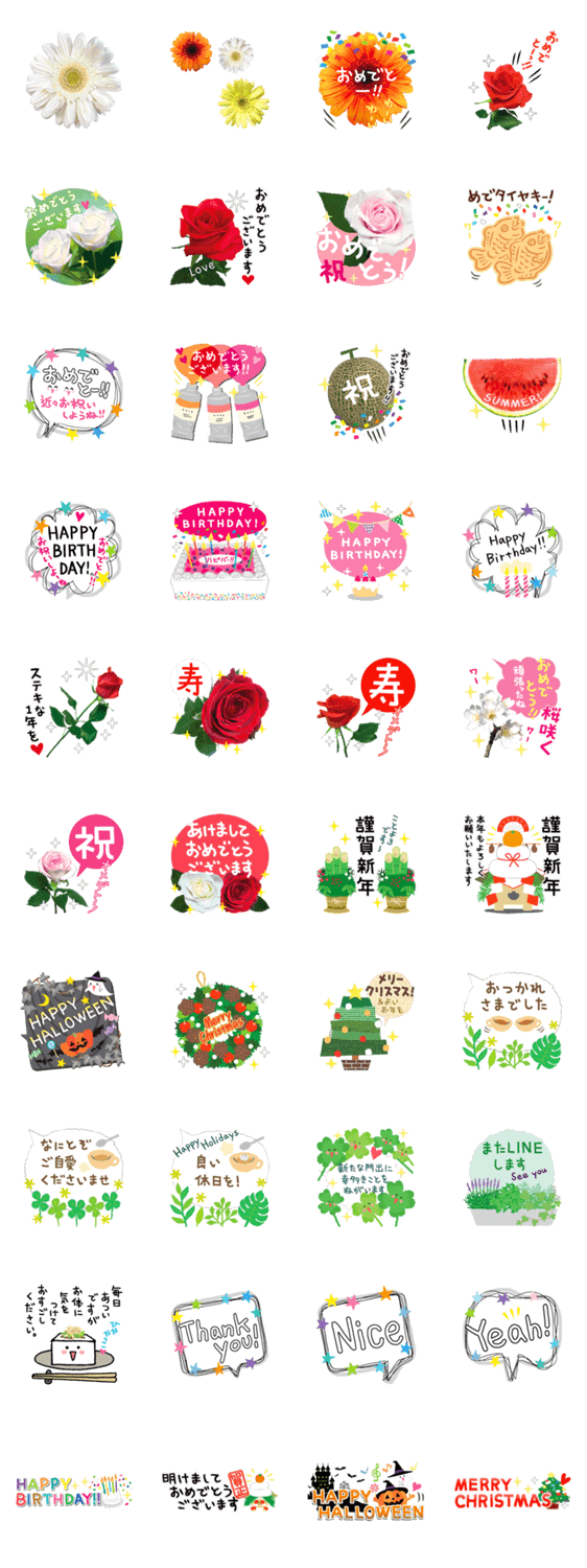 「おめでとう」が多いお祝いと写真用セット。廃盤になったスタンプから再編集。アレンジしやすく省スペースもありずっと使えて便利。誕生日暑中見舞いクリスマス年賀状等。