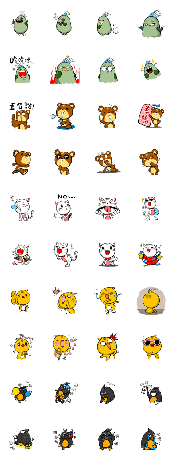 | スタンプ説明 | Love-U Taiwan's five leading characters (Chico, Timmy bear, Nana cat, Bugu cuckoo, Penguin), will lead you to eat ,drink and travel all over the whole Taiwan. |