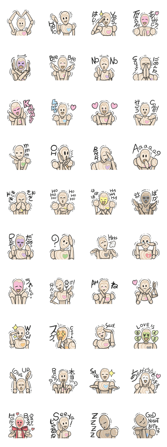 | スタンプ説明 | The Wooden model figure for drawing artist that Look like a Monkey! he can change the heart colour to show emotions! one of the Best Product From AsBTown! |
