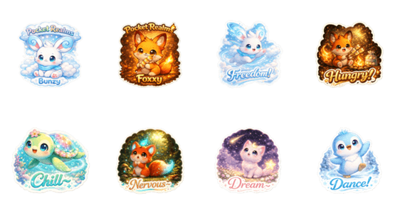 Pocket Realms is a soft fantasy world of cute creatures, capturing everyday emotions and gentle moods with a touch of magic.