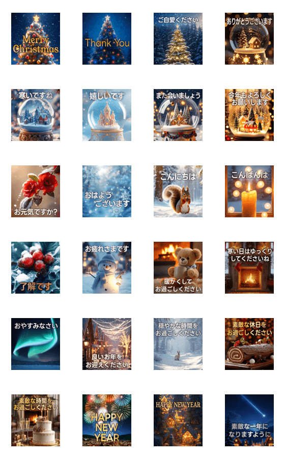 | スタンプ説明 | 幻想的な冬のポップアップスタンプ!キラキラ/雪/イルミネーション/挨拶/気遣い/イベント/年末年始/お正月/クリスマスツリー/スノードーム/3D/動く/飛び出す/あいさつ/北欧 |