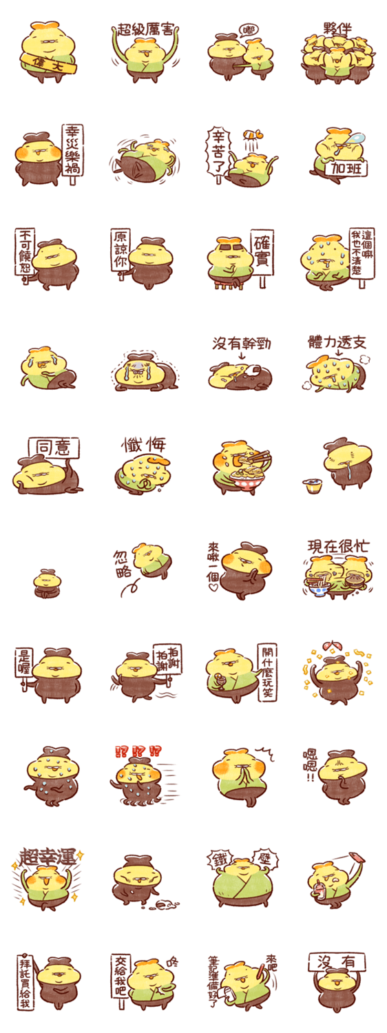 「テンプラニンジャ&サムライたっぷりの段」の繁体字Ver.です。ゆるい天ぷらの忍者と侍が、衣がたっぷりめになっているスタンプです。マイペースにむっちりしています。