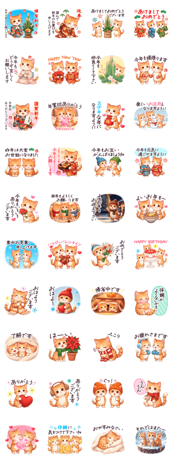 毎年使える 茶トラねこ 冬 お正月 年賀状 -LINEスタンプマニア