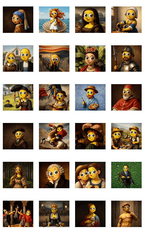 | スタンプ説明 | 有名なクラシックアートを、 かわいくて楽しいキャラクターとして再デザインしました。 日常の会話をもっと楽しく彩るスタンプです |