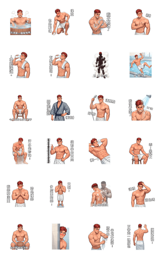 | スタンプ説明 | Hunk Manual Vol.2 makes a splash! Being handsome isn't a crime, but being this breathtakingly hot definitely deserves a life sentence. (smirk) |