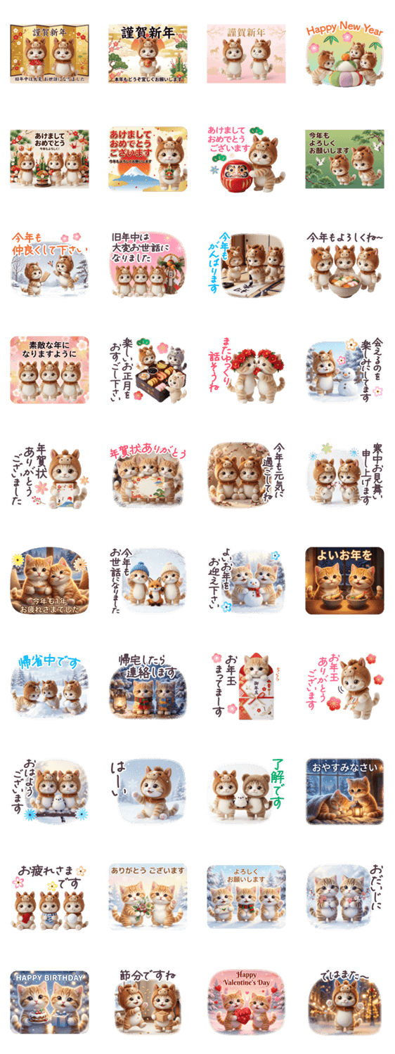 午年 馬 2026 着ぐるみねこ 正月 年末年始 -LINEスタンプマニア