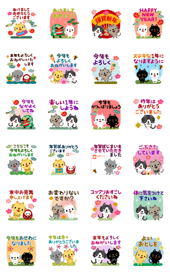 絵本みたいな*飛び出す*ねこねこのお正月 -LINEスタンプマニア