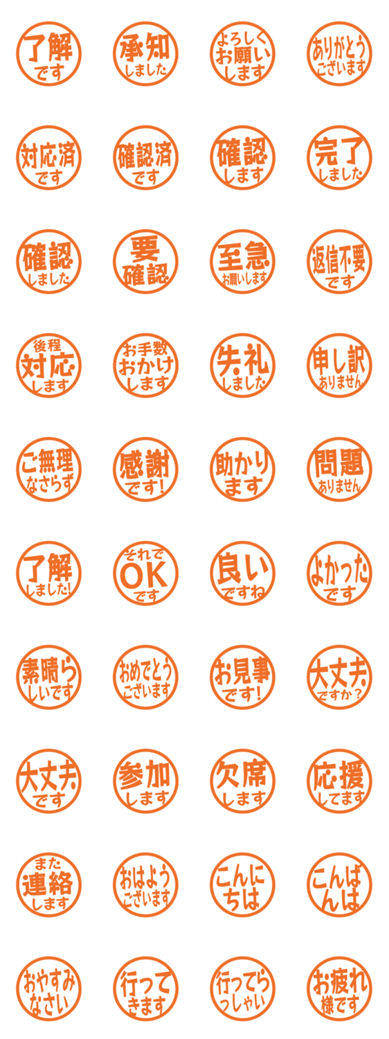 シンプルな敬語のはんこ風スタンプです。毎日の連絡や仕事の返事に使いやすいデザインです。