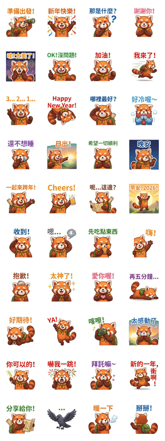 | スタンプ説明 | 元気いっぱいのレッサーパンダ「アーセン」と一緒にカウントダウン!花火を見て、2026年最初の日の出を迎えよう!活力と好奇心で、サプライズいっぱいの新年をスタート! |
