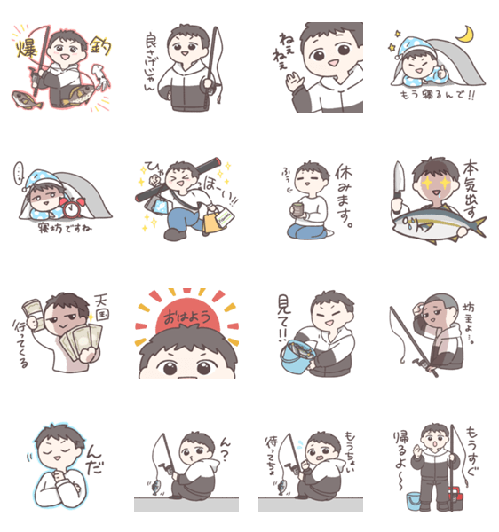 ゆるくて日常使いしやすい釣り人スタンプです。