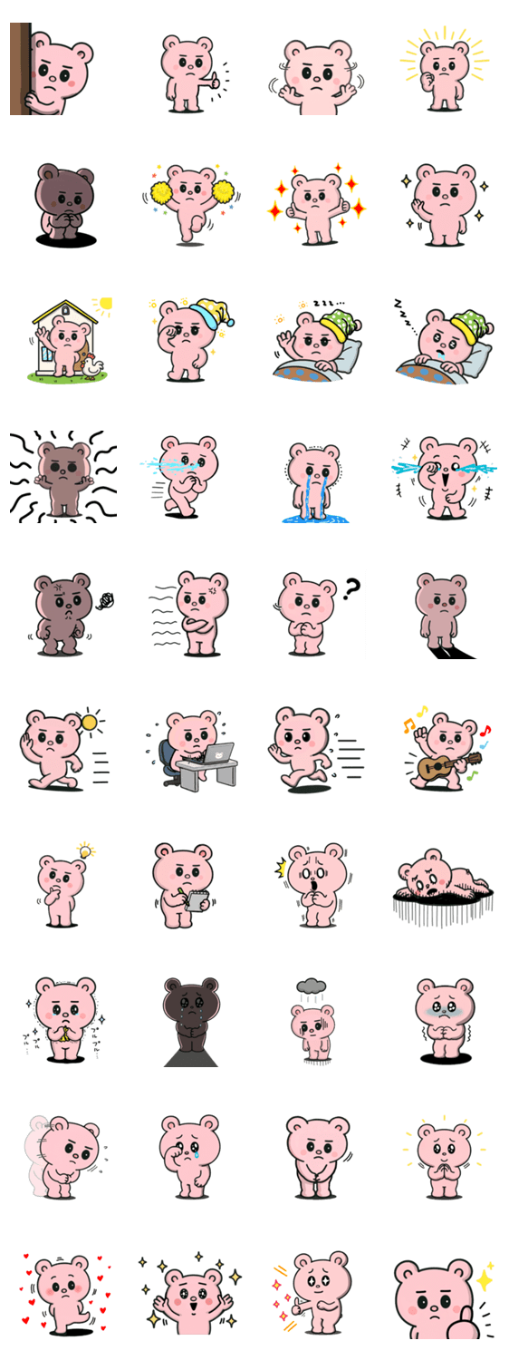リアクションに使いやすい毎日大活躍の無言スタンプ! 明るくて親しみやすい?表情でトークをパッと明るくする 友達にも仕事にも使いやすい,ピンクのくまスタンプです♪