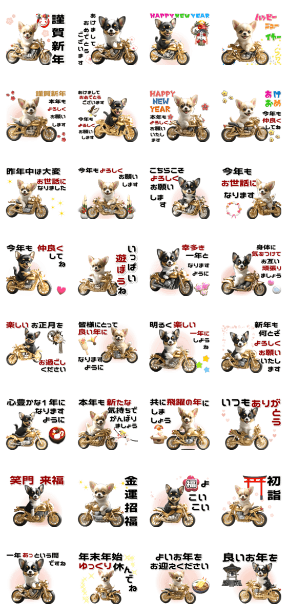 開運金運☆黄金のバイク チワワ 年末年始 -LINEスタンプマニア