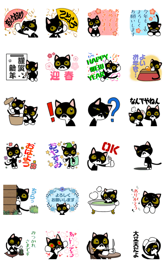 はちわれヒゲ猫のあけおめスタンプ -LINEスタンプマニア