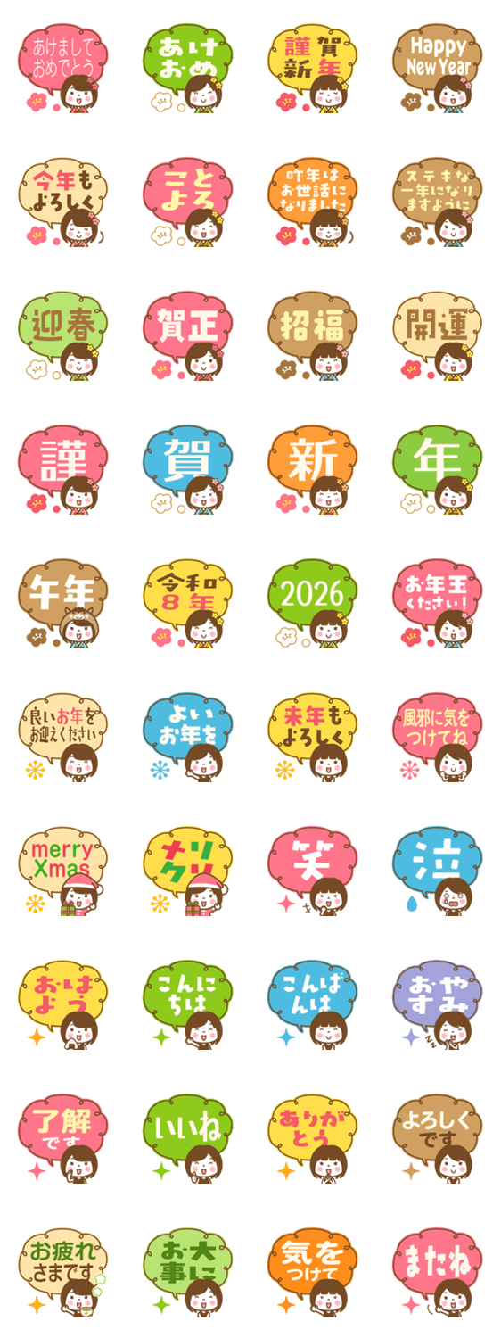年賀でガールズふきだしスタンプ -LINEスタンプマニア