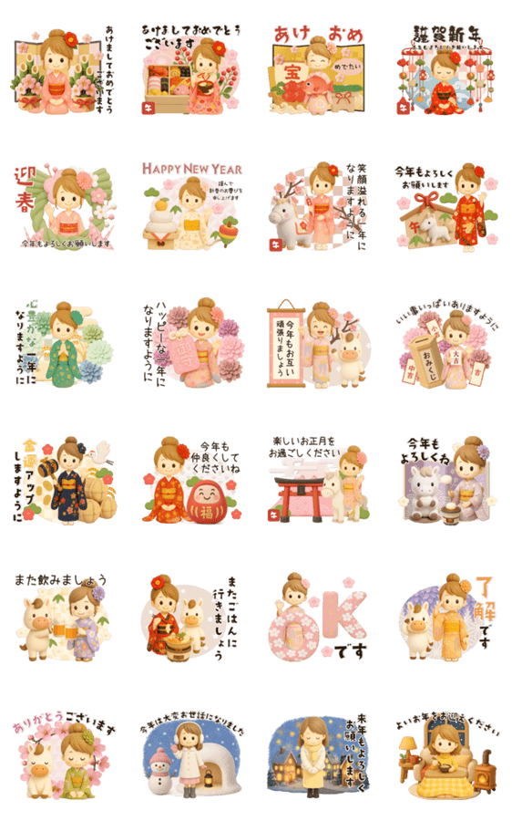 背景が動く♡大人ガーリー♪年末年始【3D】 -LINEスタンプマニア