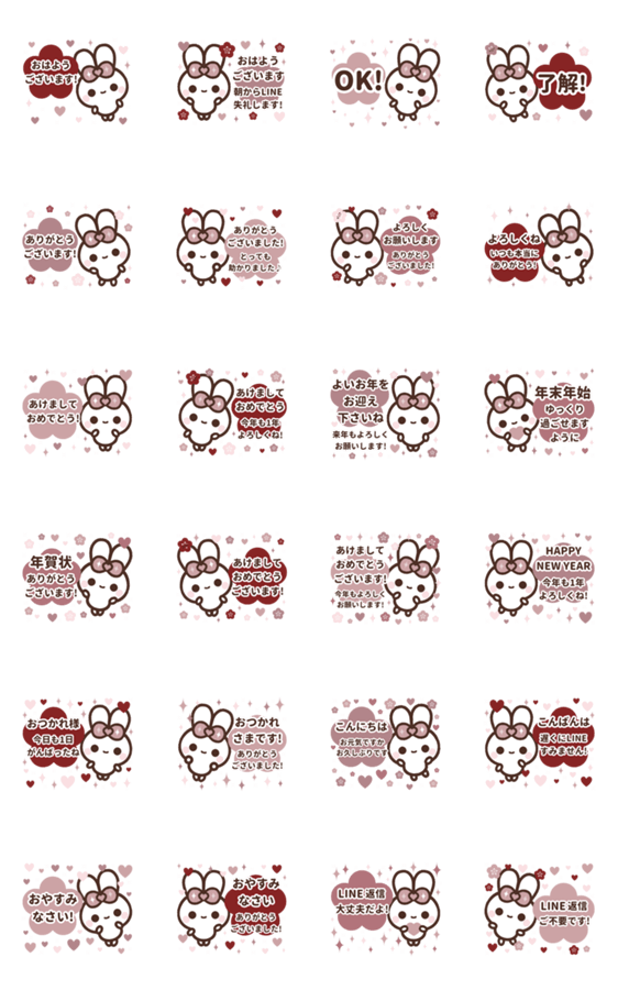 【⬛ピョンピョンラビット⬛】【❤️ウサギ✖お正月✖丁寧な毎年使える大人女子の挨拶や敬語の定番LINEスタンプ❤️】【大人可愛い】【年末年始】【シンプル】【©AIIAIIA】