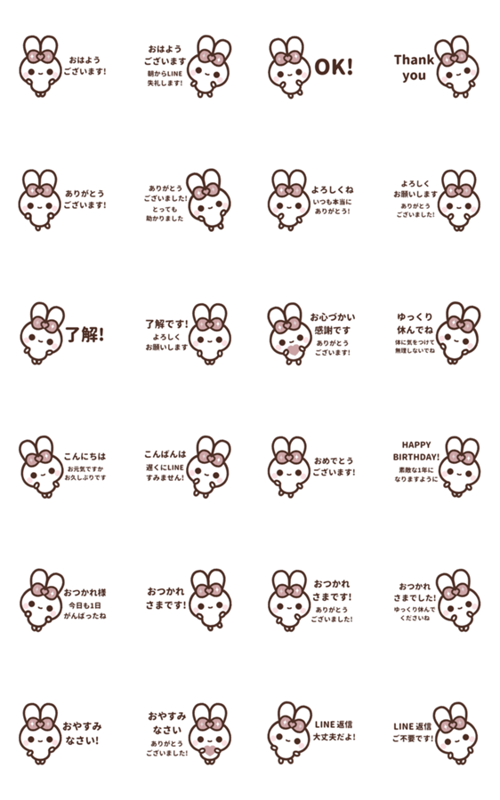 【⬛ピョンピョンラビット❼⬛】【❤️ウサギ✖気づかい✖長文の毎日使える大人女子の挨拶や敬語の定番LINEスタンプ❤️】【大人可愛い】【あいさつ】【シンプル】【©AIIAIIA】