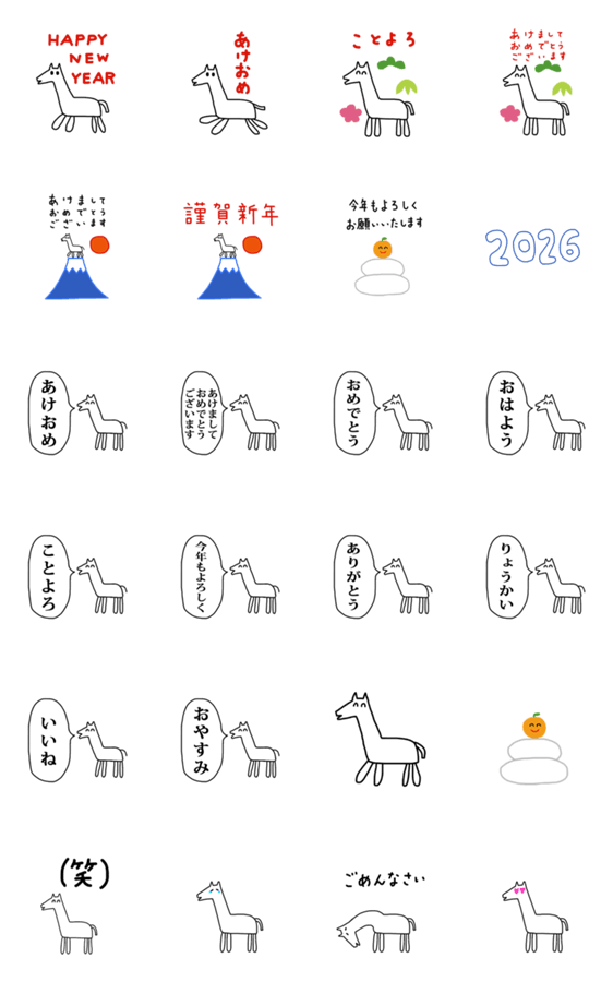 うま 動くらくがき お正月 年賀状 2026 -LINEスタンプマニア