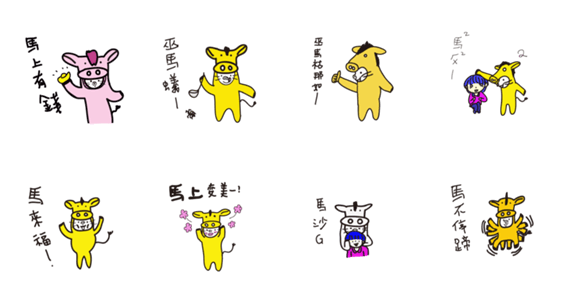 スタンプ説明 猫豚の馬年の同音異義語の語呂合わせ.