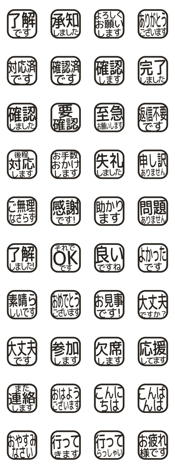 シンプルな敬語のはんこ風スタンプです。毎日の連絡や仕事の返事に使いやすいデザインです。
