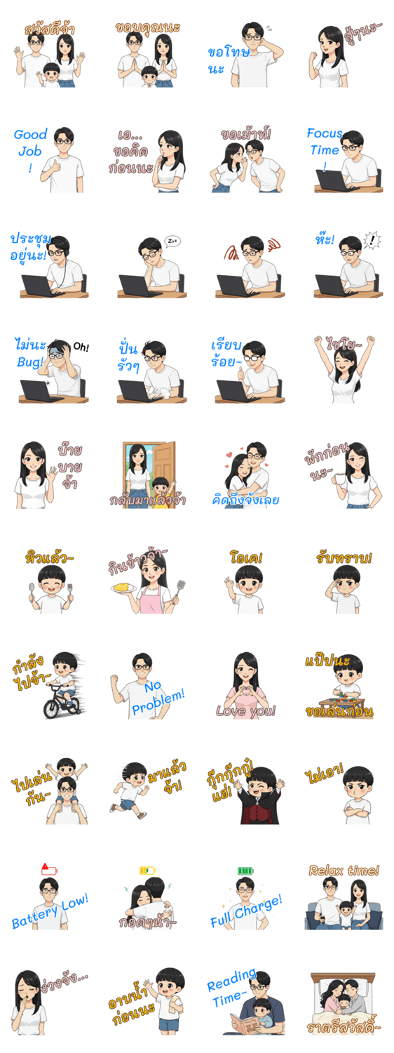 | スタンプ説明 | 24/7 Chaos Family! Dev Dad fighting bugs vs. Boss Mom & their scene-stealer rascal. Cute Manga style with home essentials. Fun & chaotic chats 24/7! |