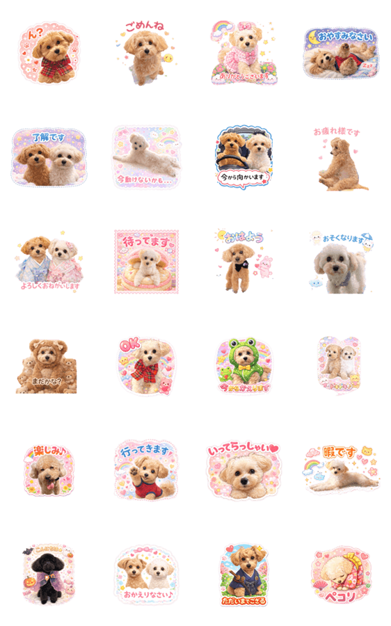 兄弟まるぷーとおじいちゃんトイプーの日常スタンプです