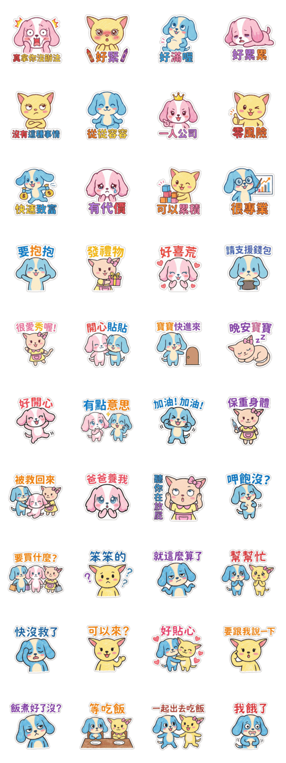 | スタンプ説明 | Pink dog: Duo-Duo, blue dog: You-You, yellow cat: Dian-Dian, are your dream companions, gently accompanying you in your daily life. |