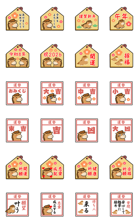 運気UP!午年の絵馬とおみくじスタンプ -LINEスタンプマニア