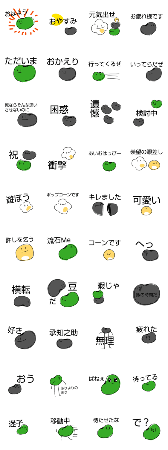 緑の豆と黒い豆第1弾 -LINEスタンプマニア