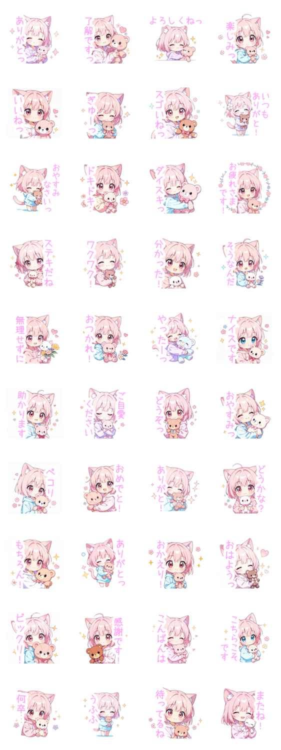 日常 セリフ 付き スタンプ 女の子 ピンク ぬいぐるみ