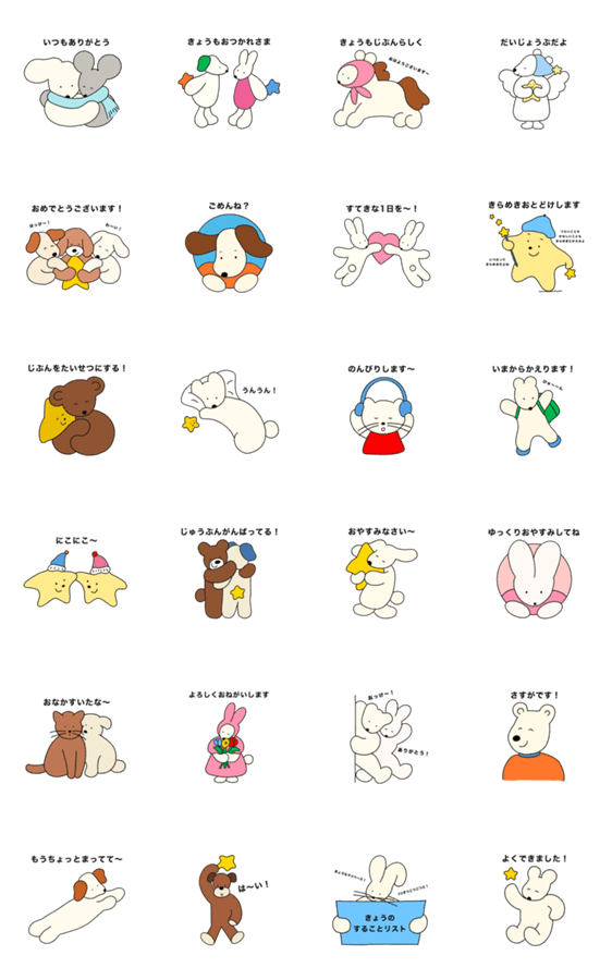 スタンプ説明 あいらしくてやさしいイラストとことば。