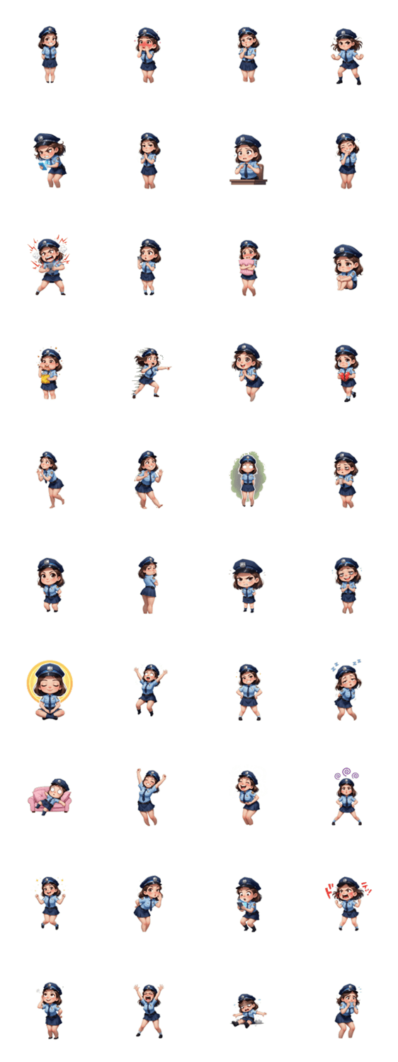 | スタンプ説明 | 確保完了!キュートでちょっと強引な婦警さんが、あなたのトークを捕まえに来ました。逃走は許しません!友達を指名手配(?)して、ユーモラスに会話をリードしましょう。 |