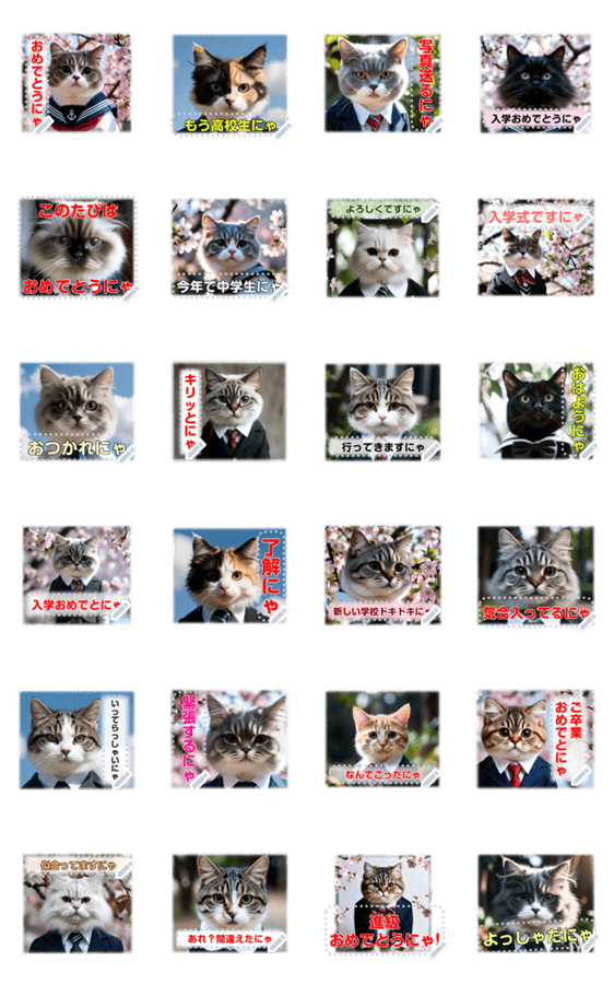 空欄に文字入力できます♡ 入学・卒業祝い・入園卒園進級いろんなお祝い事に♪ 春/学校/猫/桜の花/制服/セーラー服/リアル/可愛い/ブレザー/フレーム/メッセージスタンプ 現在この商品は一部のスマートフォン版LINE 10.3.0以上のトークルームでのみ使用できます。動作環境の最新情報はヘルプをご確認ください。