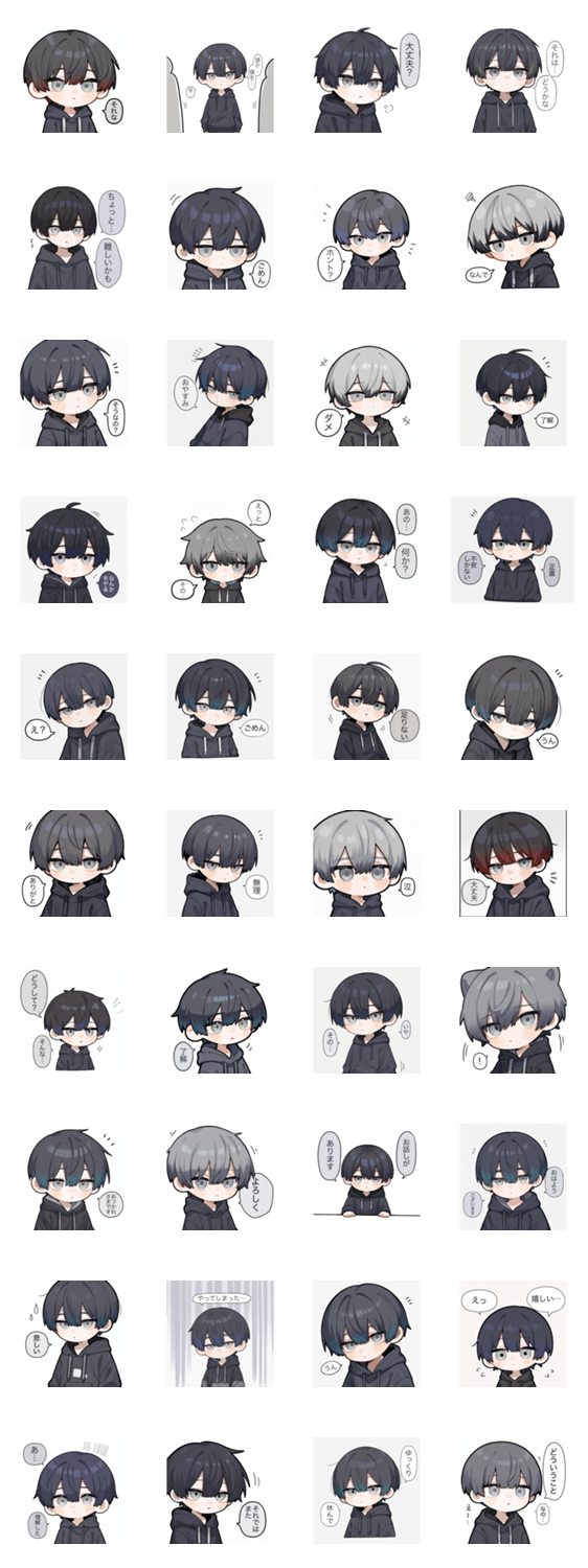 セリフ 付き 日常 スタンプ パーカー 男の子 黒色