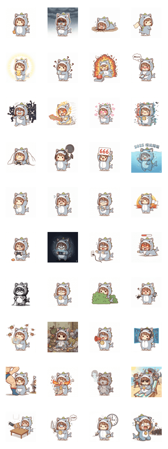 | スタンプ説明 | This adorable little shark costume is all about being cute, silly, and charming. It's the perfect healing sticker for chatting! |