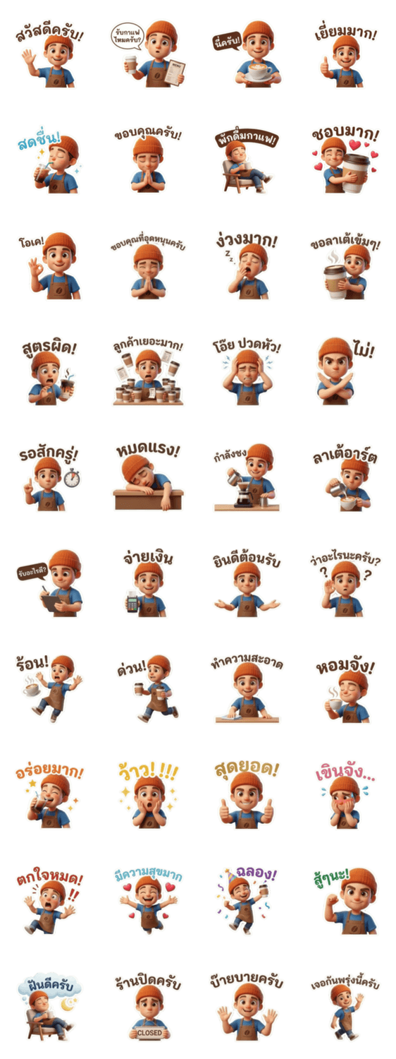 | スタンプ説明 | Let Benny, the cheerful 3D barista, add a shot of fun to your chats! Perfect for coffee lovers and anyone needing a daily boost. |