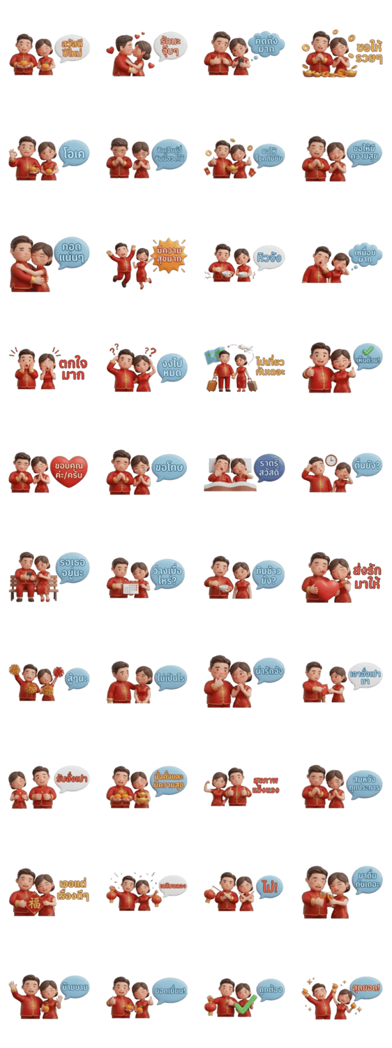 | スタンプ説明 | Celebrate Chinese New Year with this adorable 3D couple! Dressed in traditional attire, they bring good fortune and loving wishes to your chats. |