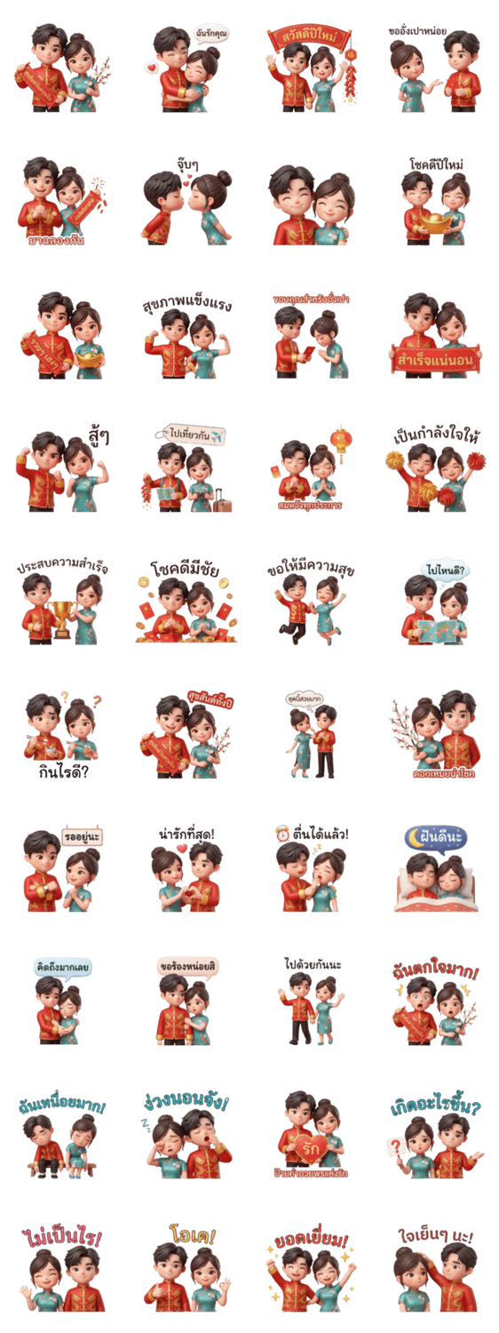 | スタンプ説明 | Celebrate Chinese New Year with this adorable 3D couple! Dressed in traditional attire, they bring good fortune and loving wishes to your chats |