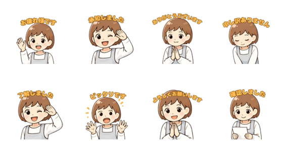 | スタンプ説明 | A set of office stickers for working moms. These simple and polite expressions are useful for everyday work communication. |