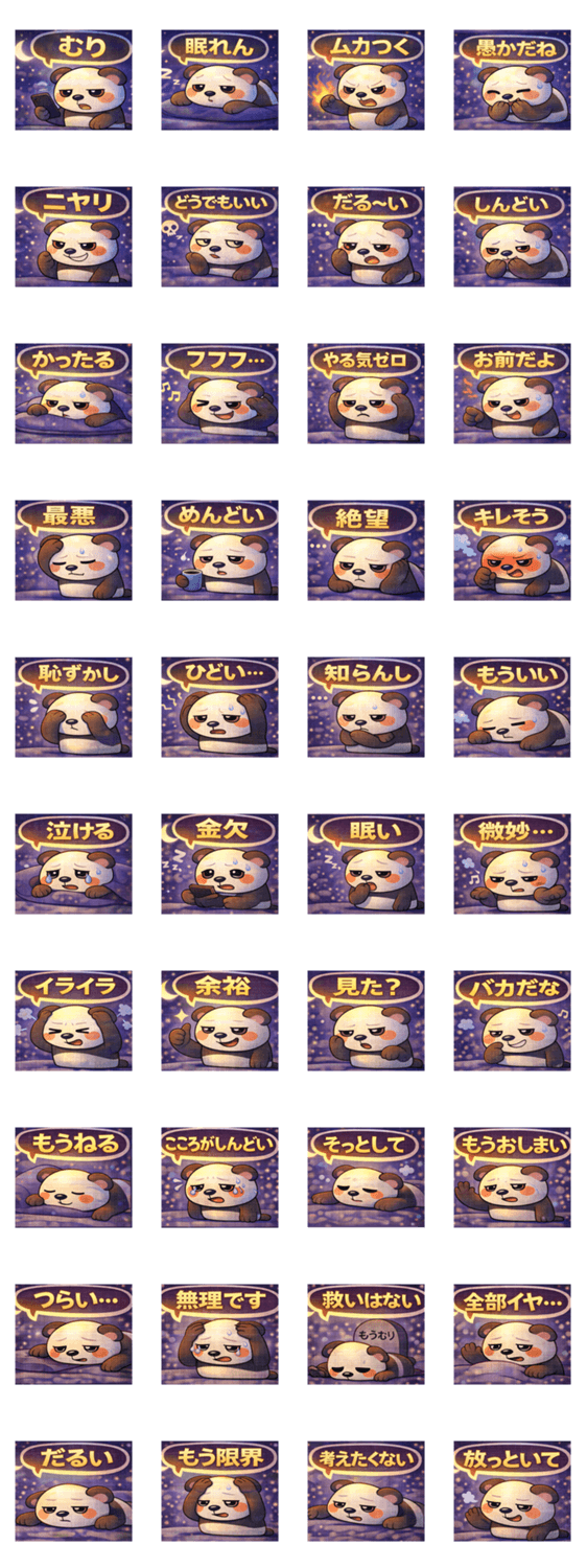 深夜テンション専用。やる気ゼロ、むり、しんどい、もうおしまい…。 誰にも言えない本音をパンダが代弁。