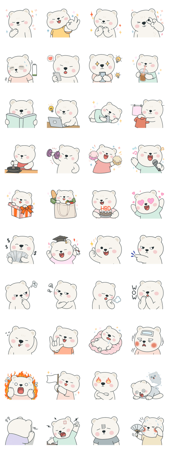 | スタンプ説明 | A gentle white bear with everyday emotions. Simple, warm, and perfect for daily chats. |