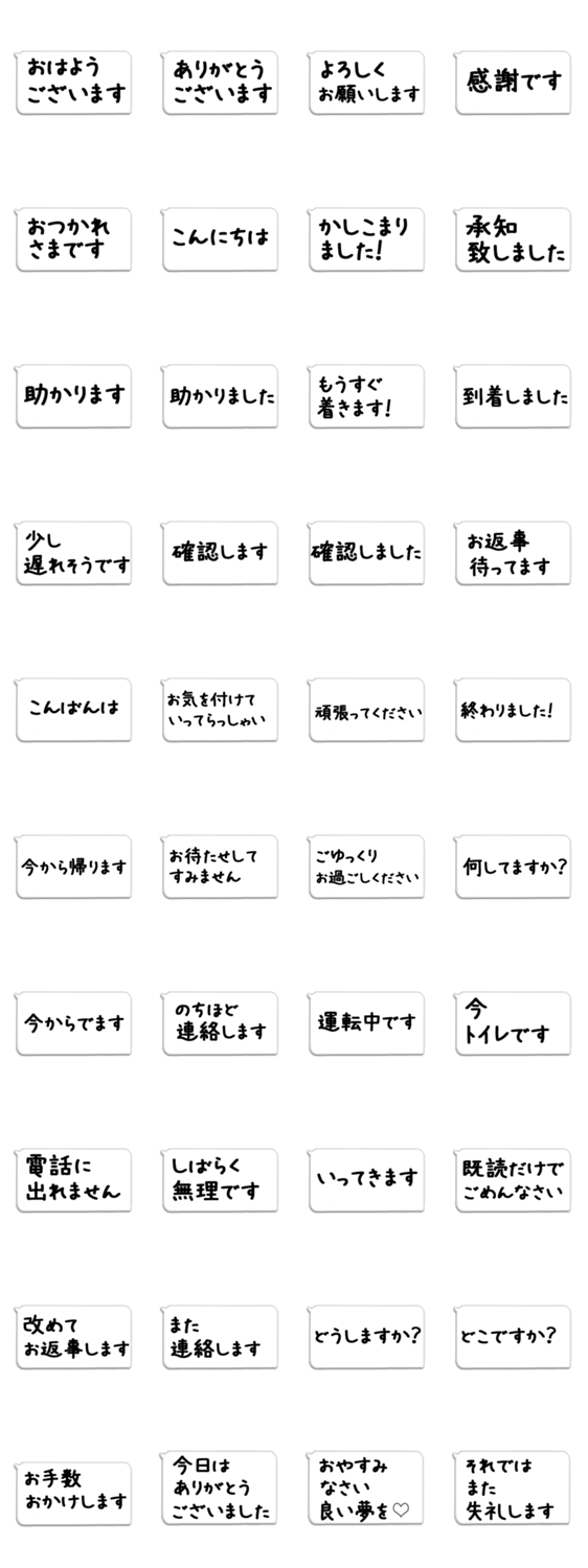 シンプルで連絡用に使える吹き出しメッセージです。文字を打つのが面倒な人用/ミドル/シニア/男性/女性/忙しい人/連絡用/毎日使える/敬語/丁寧語/