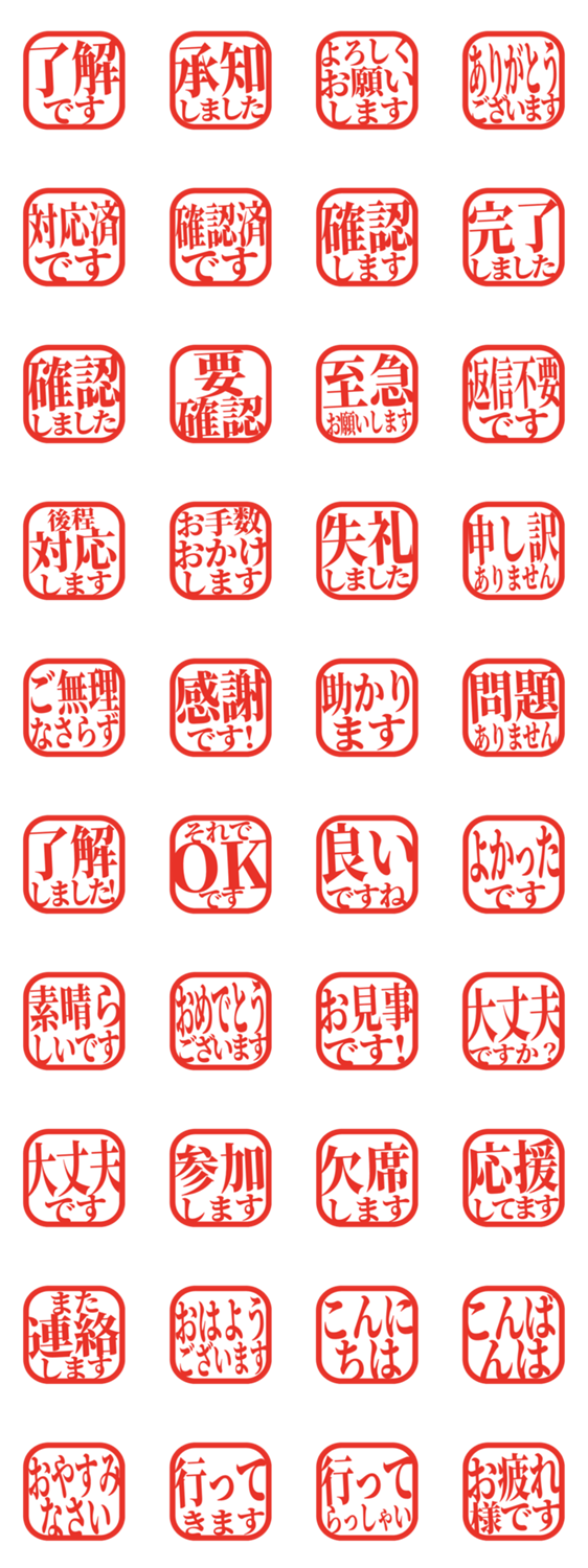 シンプルな敬語のはんこ風スタンプです。毎日の連絡や仕事の返事に使いやすいデザインです。